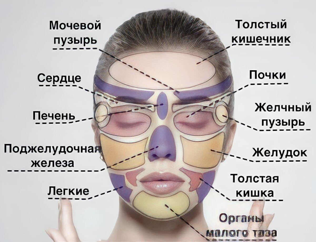 - лоб — толстый кишечник;